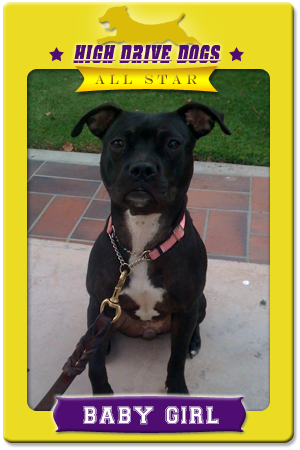 Baby Girl is a very sweet, toy driven and food motivated girl. She loves tunnels and goes nuts watching other dogs do agility. She is a quick learner and eager to learn. She is good with other dogs.