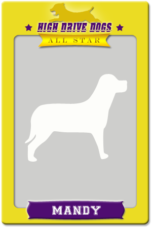 Mandy is highly motivated by food and toys. She loves frisbees and balls and will do amazing leaps and tug all day. She is people and dog friendly and would make a highly competitive frisbee dog, agility dog, obedience dog etc.