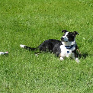 I first saw Trevor at the Humane Society Silicon Valley when I was there to teach a training class. Trevor was being exercised by a volunteer in one of the adjacent yards, and I saw him from a distance. I loved the way he ran, and when I made eye contact, he came running to the fence to see me. I asked the volunteer, who told me that he was a border collie mix, just over a year of age. Looking at him, I thought he could be a working lines border collie".
